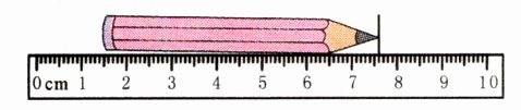 观察插图可知,铅笔一端对齐$0$刻度,另一端对齐$5$厘米$8$毫米处。