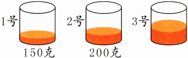 (1)150+200=350(克) 答:1 号和 2 号杯子里的橘子汁一共重 350 克。