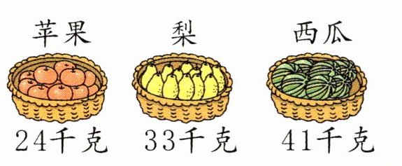 (1)33×3=99(元) 答:这筐梨一共能卖99元钱。 (2)41×2+24=82+24=106(千克) 答:一共重106千克。