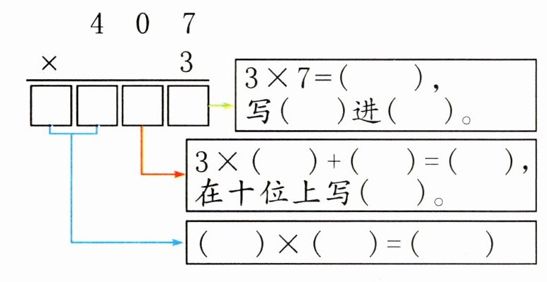 我发现:一个因数中间有0的乘法:在与中间的0相乘时,如果没有进位,要在那一位上写0占位,如果有进位,必须加上进位的数。