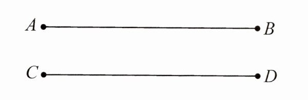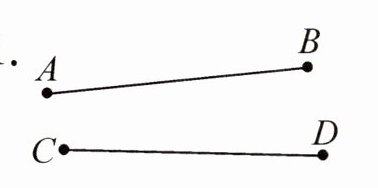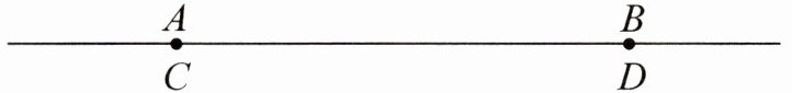 五、用圆规像下面那样比较线段 AB 和线段 CD 的长短,点 A 与点 C 重合。