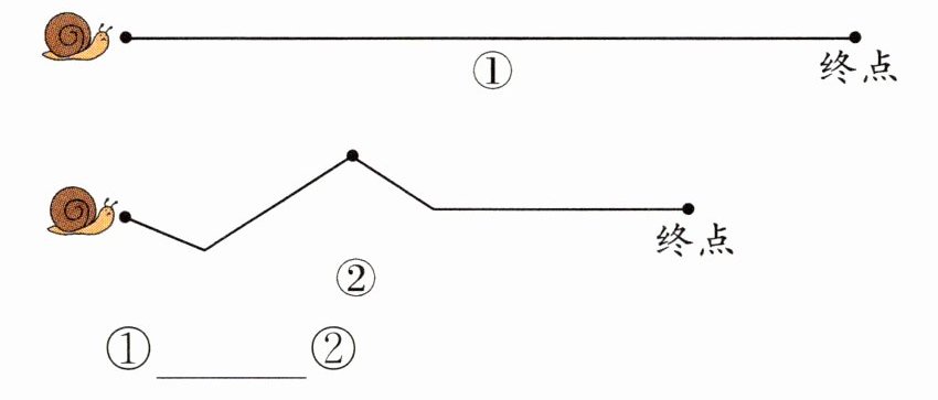 四、你能用圆规比较出哪只蜗牛爬行的路线比较长吗?