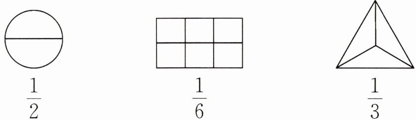对于第三个图(三角形),将三角形平均分成$3$份,涂其中$1$份表示$\frac{1}{3}$。