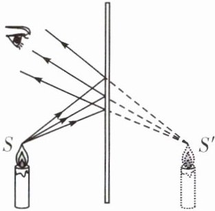 5. 如图所示,小科透过平面镜看到了蜡烛的像。下列有关平面镜成像的描述,正确的是 (