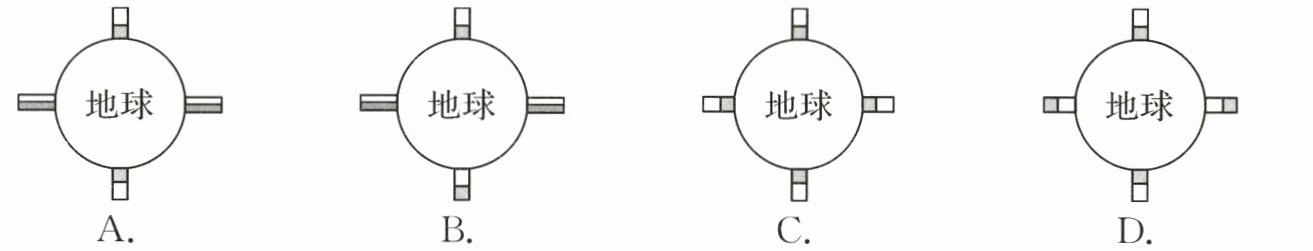 8.四个密封容器中都装有质量相等的水,将它们分别放在地球的不同地方(其中深色部分表示水)并保持静止,最接近实际的示意图是 ()