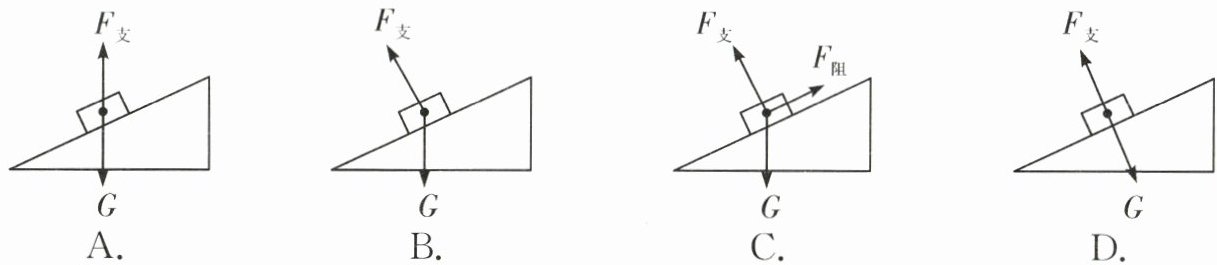 10.一木块沿光滑斜面向下滑动,若不考虑空气阻力,能正确表示木块受力情况的示意图是 ()