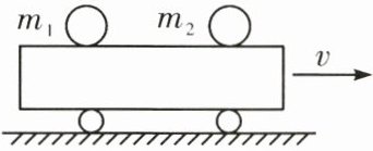 13.如图所示,在一辆表面光滑的小车上,放有质量分别为 $m_1$、$m_2$ 的两个小球,随小车一起做匀速直线运动。当小车突然停止运动,则两个小球(设小车无限长,其他阻力不计) ()