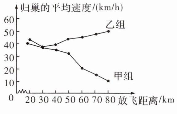 ③在天气适宜的情况下,选择不同距离放飞信鸽后,记录信鸽的归巢时间,多次测量后计算出信鸽归巢的平均速度,将结果绘制成如图所示曲线。