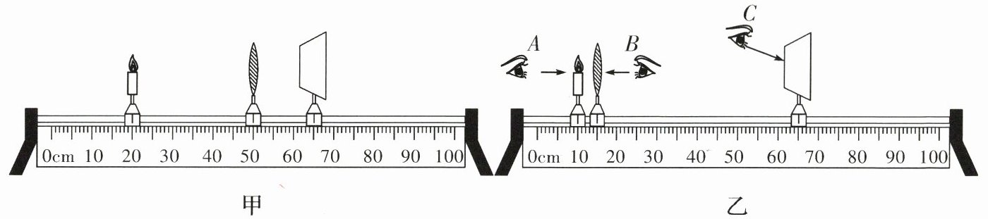 D.将光具座上的器材移至如图乙所示位置,人眼只有在 B 处才能观察到烛焰放大的像