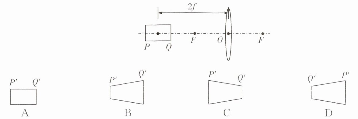 9. 有一圆柱体PQ,放在凸透镜前如图所示的位置,它所成的像P'Q'的形状应该是下列图中的(P'点是P点的像,Q'点是Q点的像) (