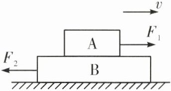 12.如图所示,水平面上叠放着 A、B 两个物体,在水平力 $F_1$ 和 $F_2$ 的作用下,以速度 $v$ 一起向右匀速运动,已知 $F_1 = 10 N$,$F_2 = 6 N$,则对摩擦力的大小和方向的判断正确的是()