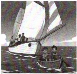 13. 如图所示,大船用船上的鼓风机吹帆作为动力,小船上的人用力划桨作为动力。关于两船的运动,下列说法错误的是 (