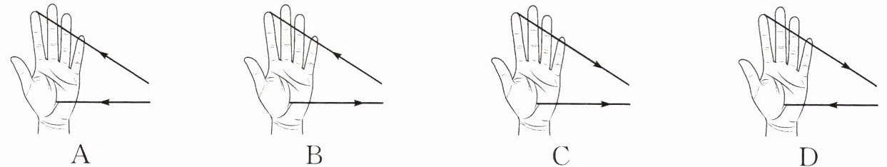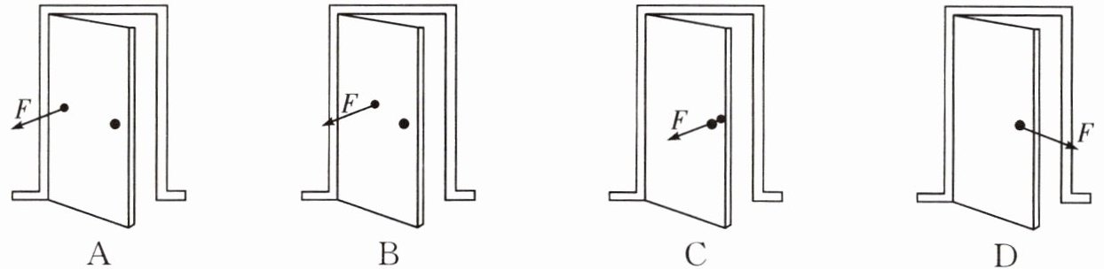 10. 力的作用效果与力的大小、方向、作用点有关。如图所示,用大小相同的力分别在门的不同位置按图示方向开门,最容易将门打开的是 ()