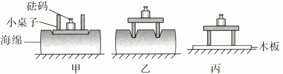 (2)若图乙中小桌子对海绵的压强是$p_{ 乙}$,图丙中小桌子对木板的压强是$p_{ 丙}$,
