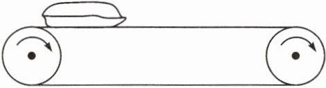 13. 如图所示,水平传送带正将大米从车间运送到粮仓。将一袋重 500N 的大米放在传送带上,米袋先在传送带上滑动,之后与传送带一起匀速运动,米袋滑动时受到的摩擦力大小是其重力的 $ \frac{1}{2} $。米袋在滑动时受到的摩擦力方向向