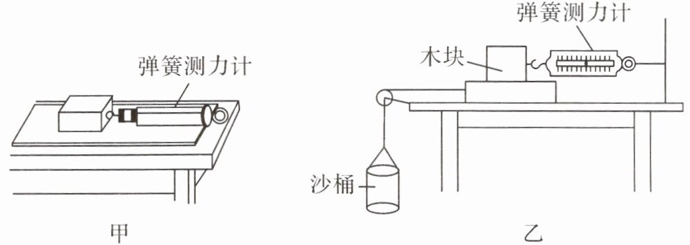 12. 为了测定木块所受到的滑动摩擦力的大小,两个实验小组分别设计了如图甲、乙所示的两种实验方案,实验中不计弹簧测力计的重力。