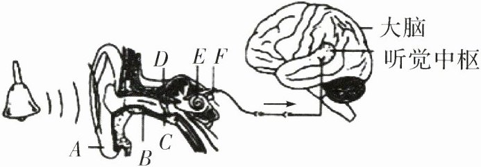 (1)外界传来的声波经过耳郭收集,进入外耳道后便会撞击鼓膜,使其产生振动,振动经过听小骨的传递和放大后传到内耳,刺激内的听觉感受器产生神经冲动。神经冲动传至大脑的特定区域,形成听觉。