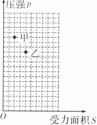 10. 如图所示,甲、乙分别表示中学生正常行走时和负重时压强$p$与受力面积$S$的情况,已知中学生的质量约为$50 kg$,则下列根据图像判断乙的状态及负重物体的质量最符合实际的是 (