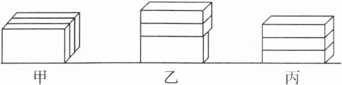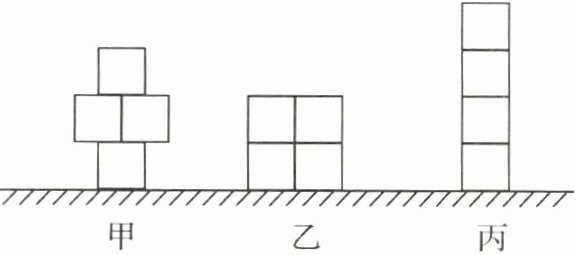 7. 如图所示,每块砖的质量相等,长、宽、高分别是$40 cm$、$20 cm$、$10 cm$,以如图三种方式放在水平地面上。比较地面受到压强$p_{甲}$、$p_{乙}$与$p_{丙}$的大小,下列判断正确的是 (