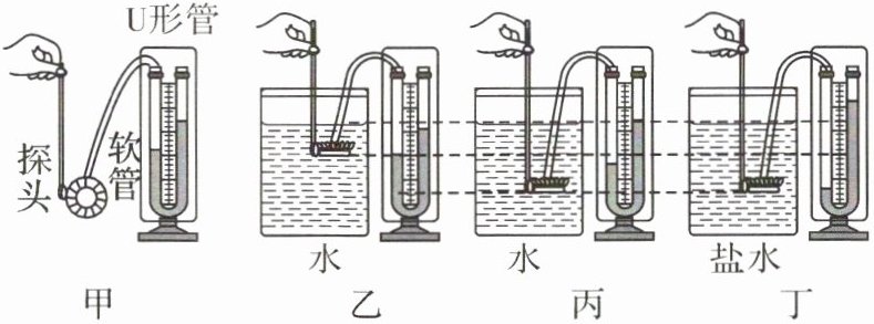 的变化得到。将探头放进盛水的容器中,探头的橡皮膜受到水的压强会内凹