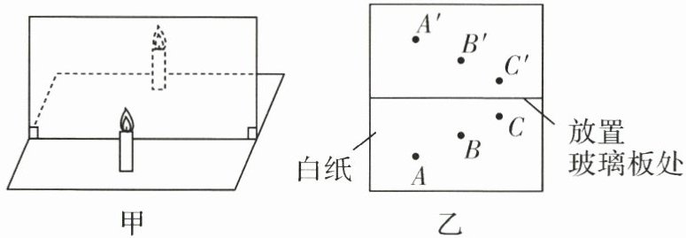 ③拿另一支相同且未点燃的蜡烛,竖立着在玻璃板后面移动,直到它与前面的蜡烛的像完全重合,在纸上记下蜡烛的像的位置$ A' $。