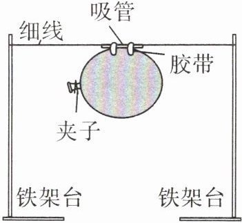 (填“前”或“后”)喷火。小科用下列方法制作如图所示的“喷气火箭”:①将气球吹大,并用夹子把口封紧;②从一根吸管上剪取一小段吸管,用胶带把它固定在气球上;③将一根细线穿过吸管,并水平拉直,作为“喷气火箭”的运动轨道,把封口的夹子松开,气球就会向右