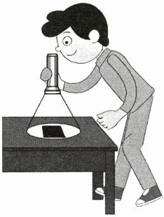 20. 某天晚上小科在桌面上铺好一张白纸,把一小块平面镜放在白纸上,让手电筒的光正对着平面镜照射,如图所示。从侧面看去 ()
