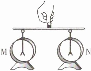 D.用手触摸金属棒,验电器 M、N 的金属箔片张开角度不变