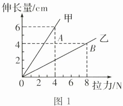 了甲、乙两种规格的弹簧进行测试,绘出如图1所示的图像。回答下列