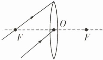 (按上述解析画出两条折射光线,一条平行主光轴,一条方向不变)