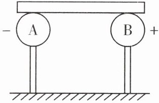12. 如图所示,A、B 是两个完全相同的金属球,都放在绝缘支架上。A 带大量负电荷,B 带大量正电荷,用铜导线连接两球的瞬间,下列说法正确的是 ()