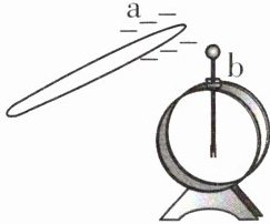15. 如图所示,用一个带负电的物体 a 去接触不带电的验电器上的金属球 b,金属球 b 带上负电,则下列说法正确的是 ()