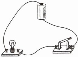 14. 请在图中标出电池的正、负极和电路中自由电子定向移动的方向。