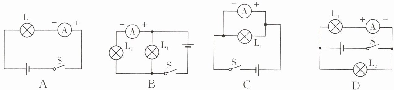 4. 要想知道某段电路中通过的电流大小,可以用电流表来测量。如图所示,要用电流表测量通过$ L_1$的电流,下列电路图中正确的是 ()
