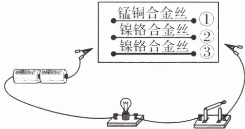 4. 如图所示,线路板上的三根合金丝长度均相同,合金丝①和②粗细相同,但比合金丝③细。小科用该装置探究影响导体电阻大小的因素,下列说法错误的是(