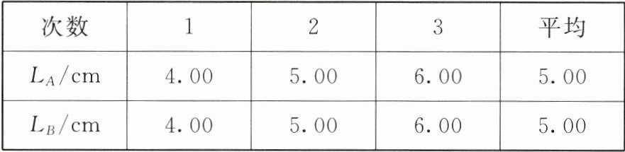(3)小明将三组数据取平均值,得到$L_B$和$L_A$的平均值相等,由此得出结论: