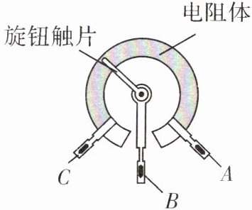 。(2)如图是一种旋钮型变阻器的结构示意图,利用它可以改变音响的音量大小。将铜片$B$和铜片$A$接入电路并与喇叭串联,则顺时针旋转旋钮触片时,音量将