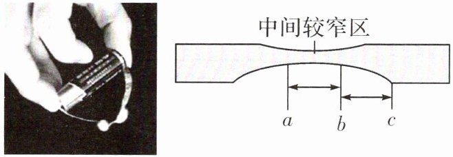 8. 如图所示,将包装口香糖的锡箔纸剪成中间较窄的细条,然后将锡箔纸的两端连接电池正、负极,很快发现锡箔纸中间较窄处开始冒烟起火,这是因为锡箔纸将电池