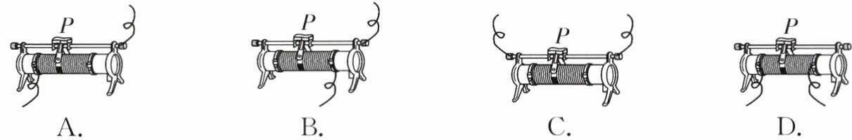 4. 如图是滑动变阻器的四种接法。当滑片P向右移动时,接入电路中的电阻变大的是 ()