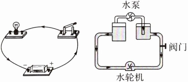 )①电源提供电压与水泵维持水压相似 ②电路中的开关与水路中的水轮机相似