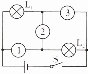 7. 如图所示电路图,已知两只小灯泡 L₁ 和 L₂ 均能发光且相互影响,则关于①、②和③三个电表(电流表或电压表)的判断正确的是 (