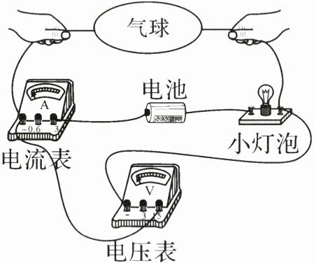 20. 某学习小组将装满盐水的气球连接在如图所示的电路中。当用手向相反的方向拉动连接气球的导线,使气球变长(盐水与导线充分接触且气球不破裂),对这一过程进行分析,下列说法正确的是 ()