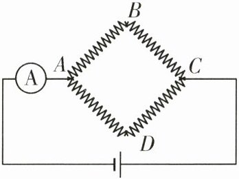 19. 如图所示,将一段粗细均匀的电阻丝折叠成正方形ABCD。若将A、C两端接入电路中,电流表示数为0.6A;若将A、B两端接入电路中,则电流表示数为 ()