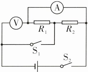 22. 如图所示,电源电压不变,当开关$S_1$、$S_2$都闭合时,电流表的示数为0.25A,电压表的示数为8V。断开开关$S_1$、$S_2$后,将电压表、电流表的位置互换,然后只闭合开关$S_2$,电流表的示数为0.2A,则$R_1 =$$\Omega$,$R_2 =$$\Omega$。