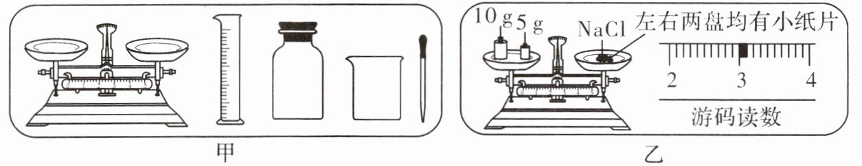 (2)托盘天平使用应遵循“左物右码”原则,图乙中氯化钠和砝码位置放反了。