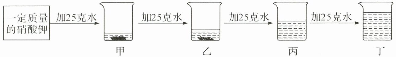 (1)甲烧杯底部有未溶解的硝酸钾固体;