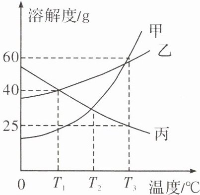 $g$丙才能恰好达到饱和状态。(5)$T_{1}^{\circ }C$时,将甲、乙、丙三种物质的饱和溶液升温至$T_{3}^{\circ }C$,所得的溶液中,溶质的质量分数由小到大的关系是