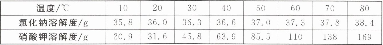 13. 已知氯化钠和硝酸钾在不同温度下的溶解度如下表。
