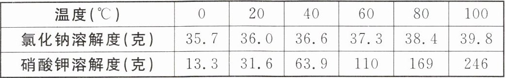 )氯化钠和硝酸钾在不同温度下的溶解度