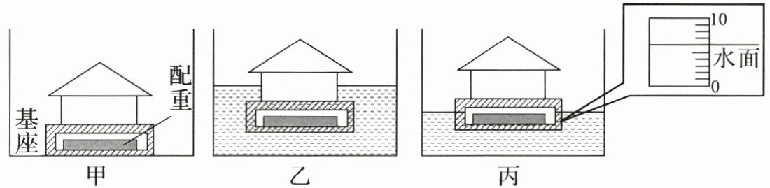 (1)小滨发现防洪屋模型上浮时水位超过了基座,如图乙所示。为了让防洪屋模型在水面以上,下列改进措施中可行的是。(可多选)